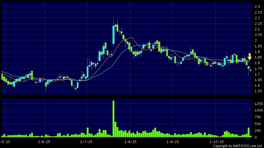 Disclaimer:The information, financial market data, quotes, charts, statistics and / or various technical analysis indicators are automatically generated based on the analyses and interpretations of publicly available information and should be used as references only at your own discretion. Such automatically generated content does not reflect the views or opinions of AASTOCKS.com Limited nor does AASTOCKS.com Limited make any guarantees to their accuracy, completeness, timeliness or correctness. You are advised to consult independent professional advice to verify pricing information or to obtain more detailed market information. Any uses of information or trades executed following the said automatically generated content are taken at your own risk for your own account.