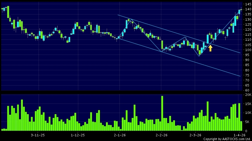 區域突破指股價在過去的一段時間只在一個範圍在內活動,然後股價上升作出突破,升穿區域的頂部,技術走勢向好。(港股報價延遲最少十五分鐘。沽空資料截至 2026-04-02 12:25。)